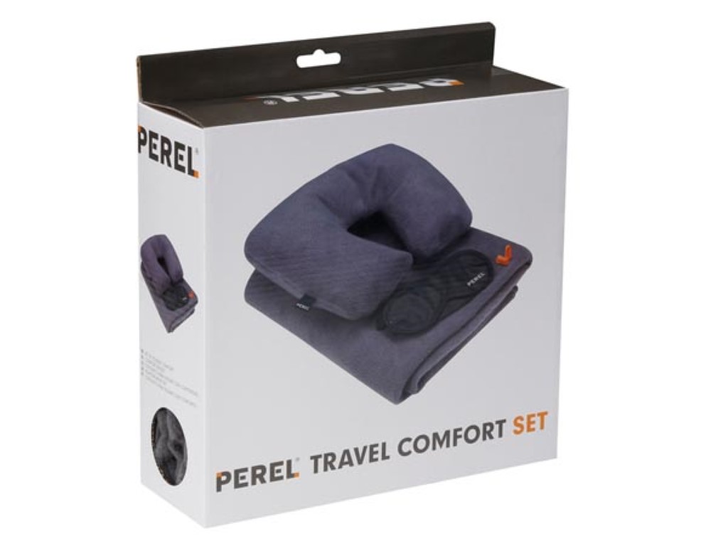 inclui : máscara para os olhos, encosto de cabeça insuflável, tampões para os ouvidos, manta de lã
