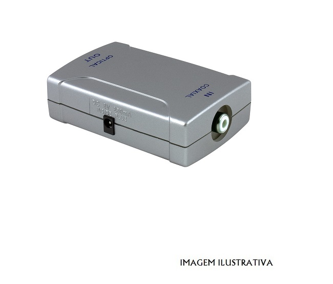 Este é um conversor digital compacto de sinal digital coaxial para óptico. Este conversor funciona apenas em uma direção, entrada - saída (IN-OUT)