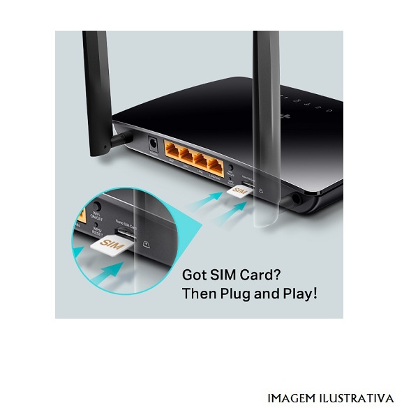 | Conteúdo da embalagem | 300Mbps Wireless N 4G LTE Router TL-MR6400 Power Adapter RJ45 Ethernet Cable Quick Installation Guide |
